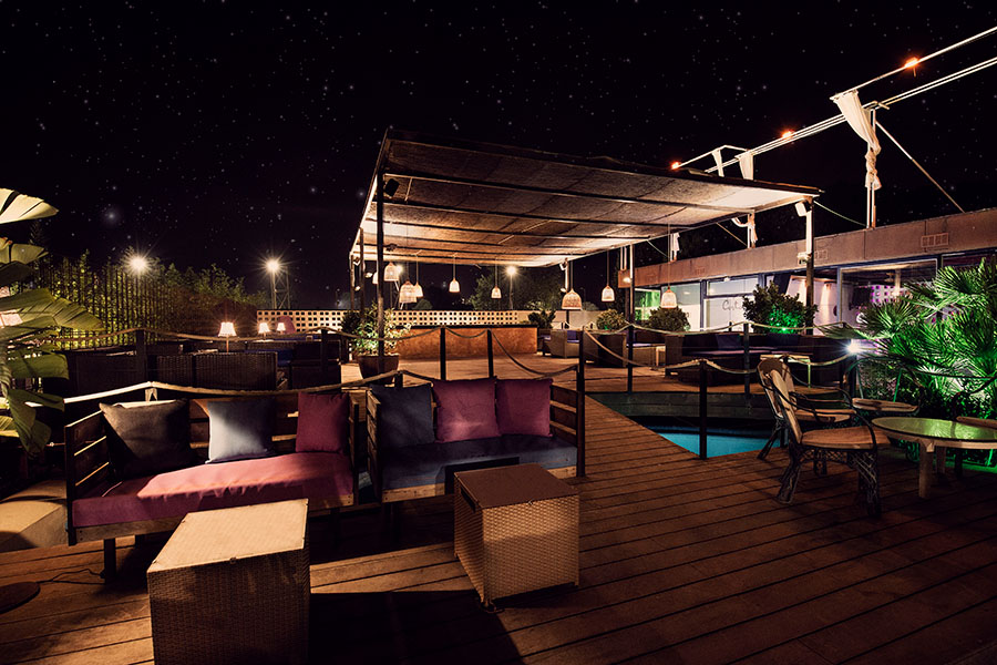Esta zona es mucho más que una terraza cualquiera. Con diversas barras para pedir copas y mesas dispuestas para una conversación relajada entre amigos, esta zona idónea para aquellos que buscan un ambiente tranquilo donde compartir momentos con los suyos.